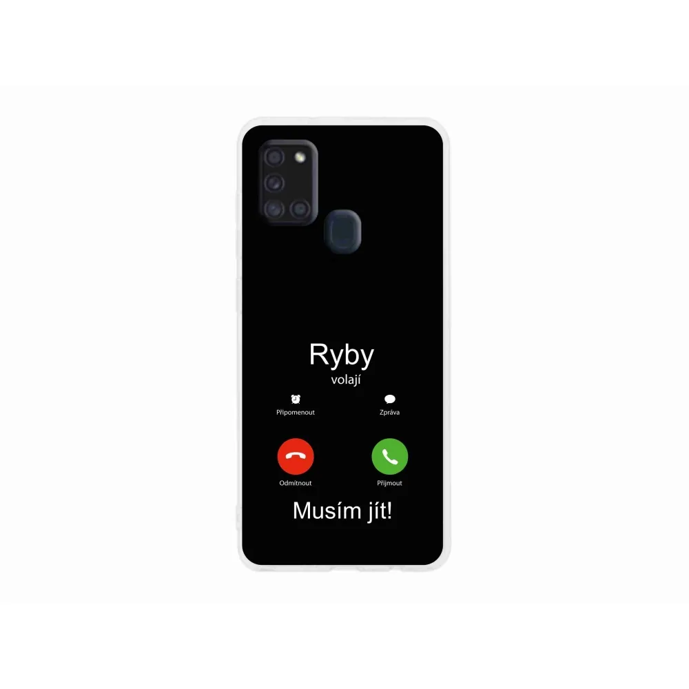 Gél borító mmCase Samsung Galaxy A21s készülékhez - hal hívás fekete háttérrel