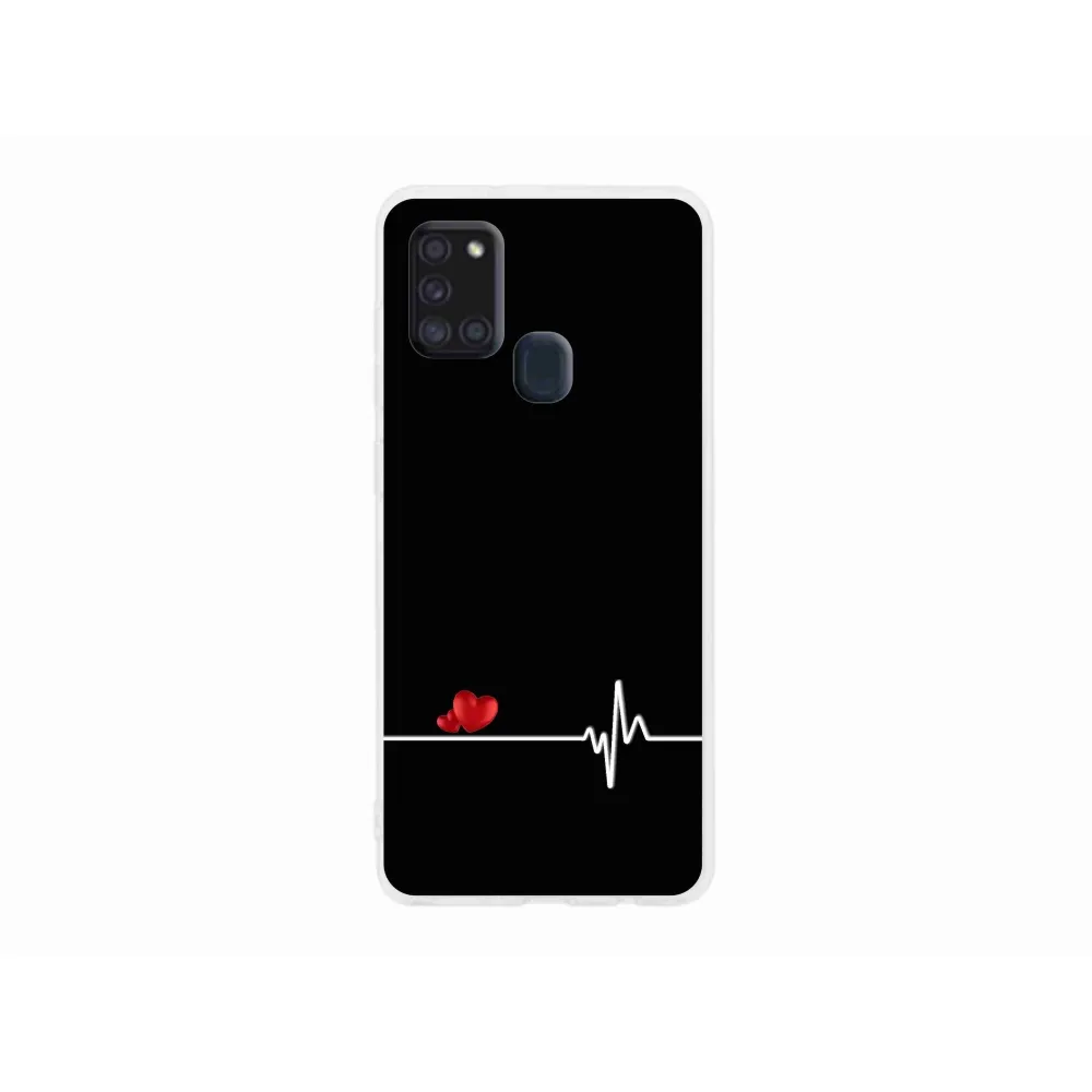 Gél borító mmCase Samsung Galaxy A21s készülékhez - szív és szívverés fekete háttérrel