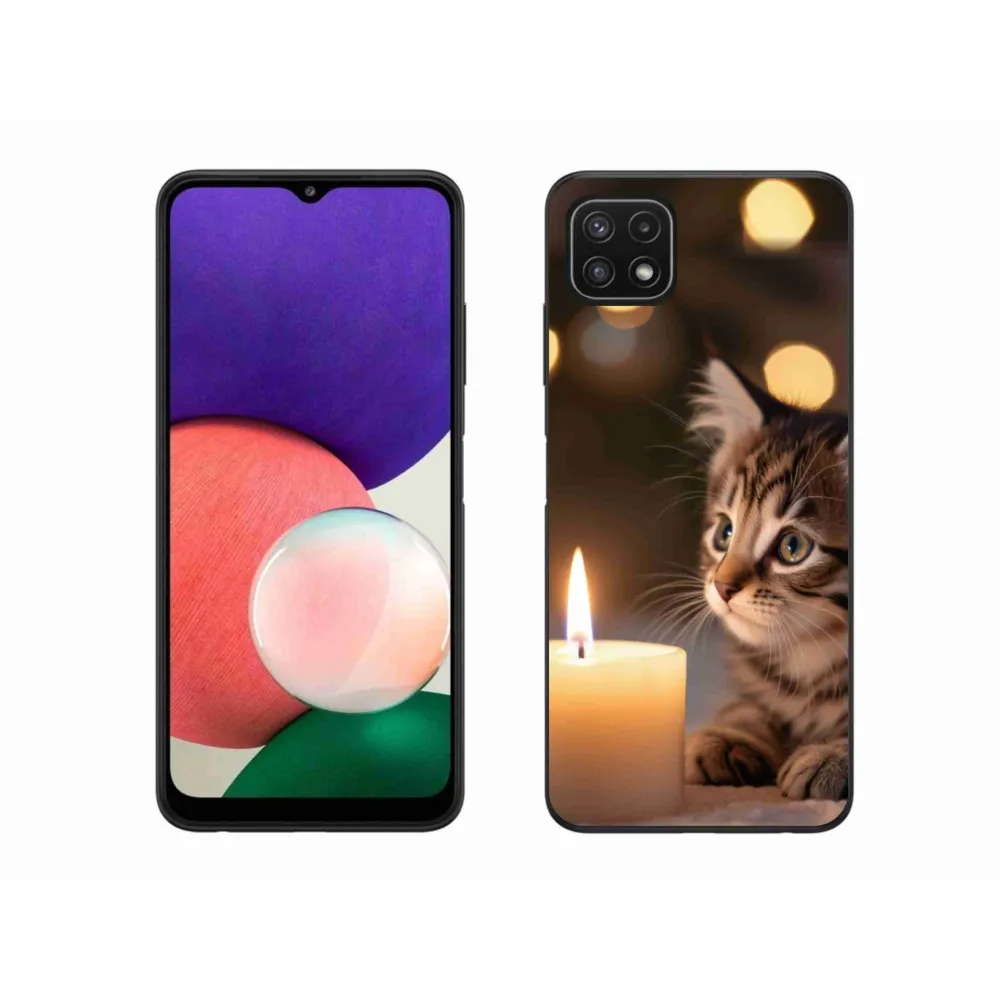Gél borító mmCase Samsung Galaxy A22 5G - cica és gyertya - Samsung Galaxy A22 5G számára