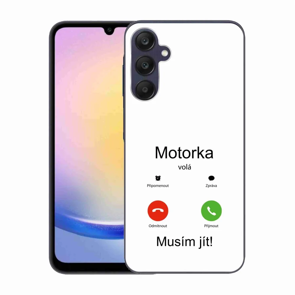 Rugalmas zselés tok mmCase kép Samsung Galaxy A25 5G - motoros hívás fehér háttérrel