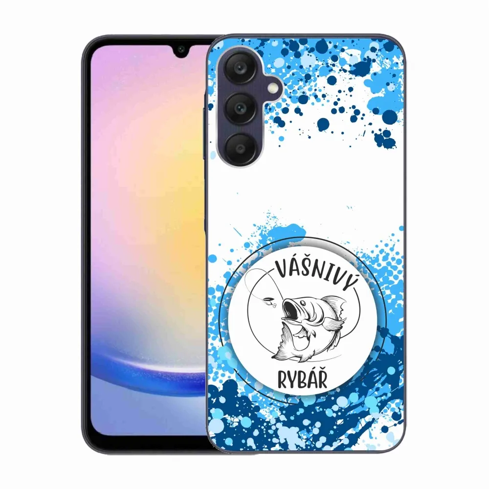 Rugalmas zselés tok mmCase kép Samsung Galaxy A25 5G - szenvedélyes halász fehér háttérrel