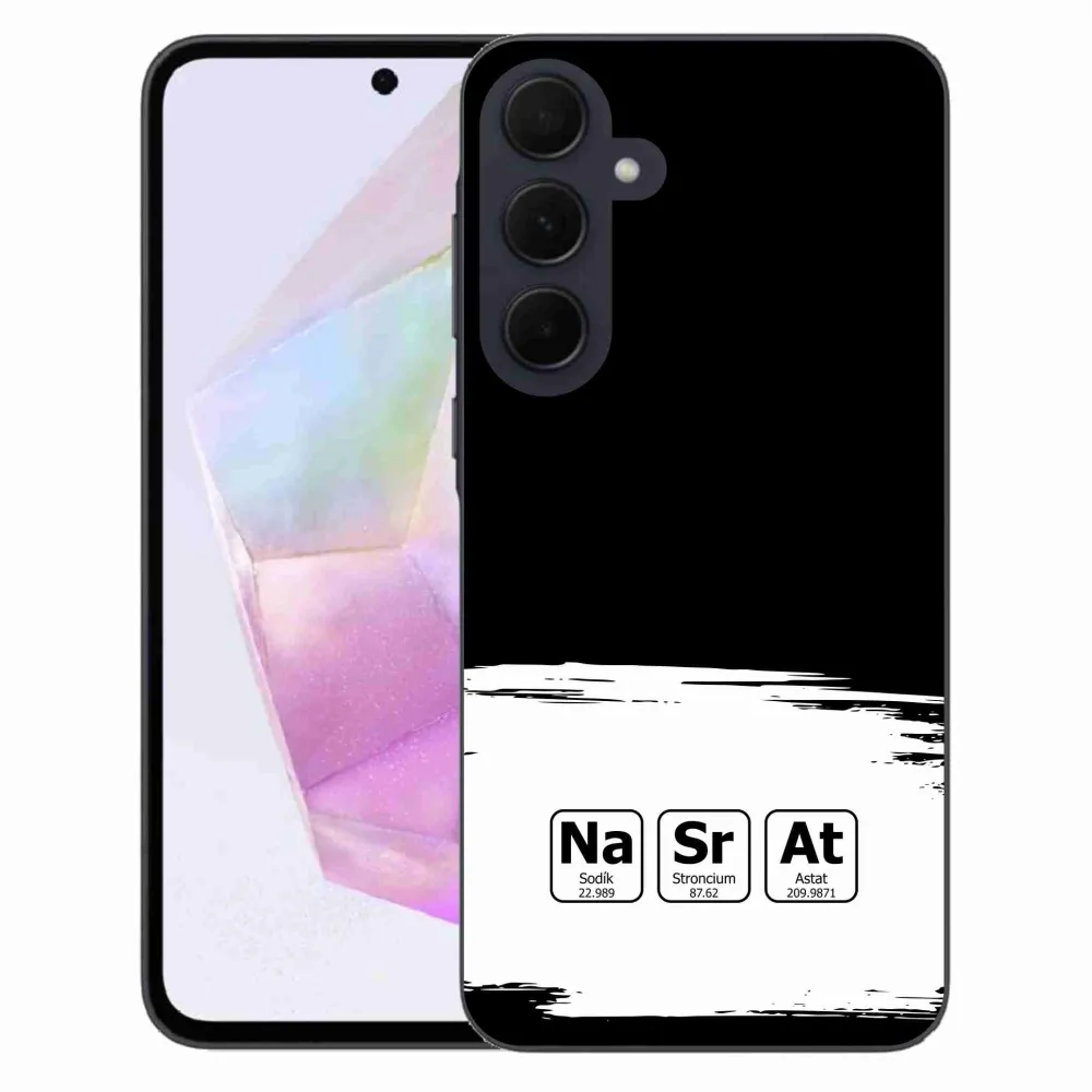 Rugalmas zselés tok mmCase kép Samsung Galaxy A35 5G - kémiai elemek fehér és fekete háttérrel