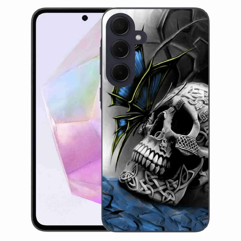 Rugalmas zselés borító mmCase a Samsung Galaxy A35 5G képével - pillangó és koponya