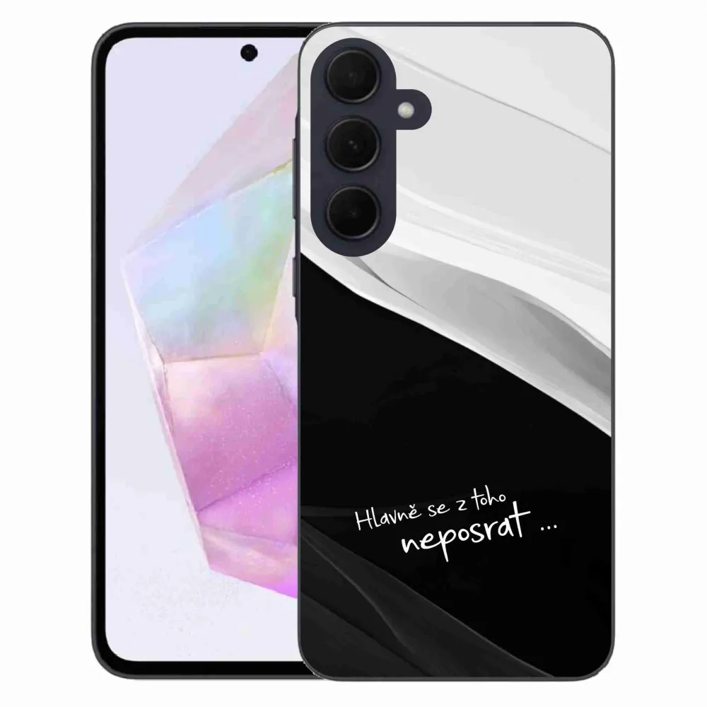 Rugalmas zselés tok mmCase kép Samsung Galaxy A35 5G - vicces szöveg 13 fekete-fehér háttérrel