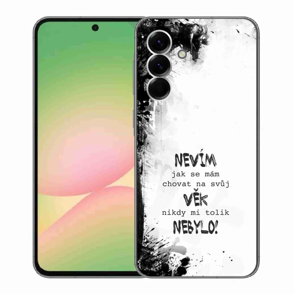 Rugalmas zselés tok mmCase kép Samsung Galaxy A56 5G - vicces szöveg 14 fehér háttérrel
