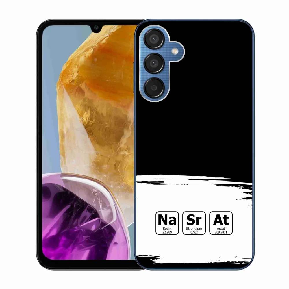 Rugalmas zselés tok mmCase kép Samsung Galaxy M15 5G - kémiai elemek fehér és fekete háttérrel