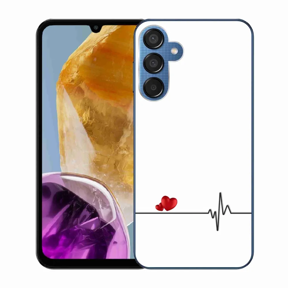Rugalmas zselés tok mmCase a Samsung Galaxy M15 5G képével - szív és szívverés fehér háttérrel