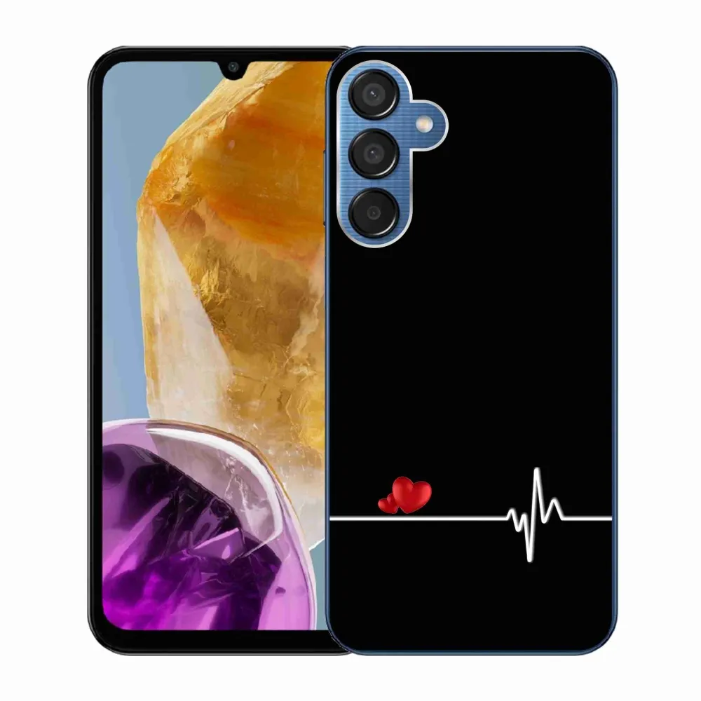 Rugalmas zselés tok mmCase a Samsung Galaxy M15 5G képével - szív és szívverés fekete háttérrel