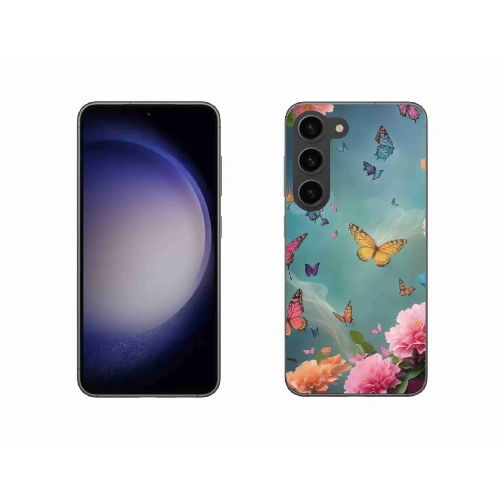 Gél borító mmCase Samsung Galaxy S23 5G - színes virágok és pillangók - Samsung Galaxy S23 5G számára