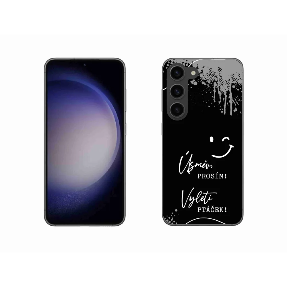 Átlátszó gél tok mmCase kép Samsung Galaxy S23 5G - vicces szöveg 4 fekete háttérrel
