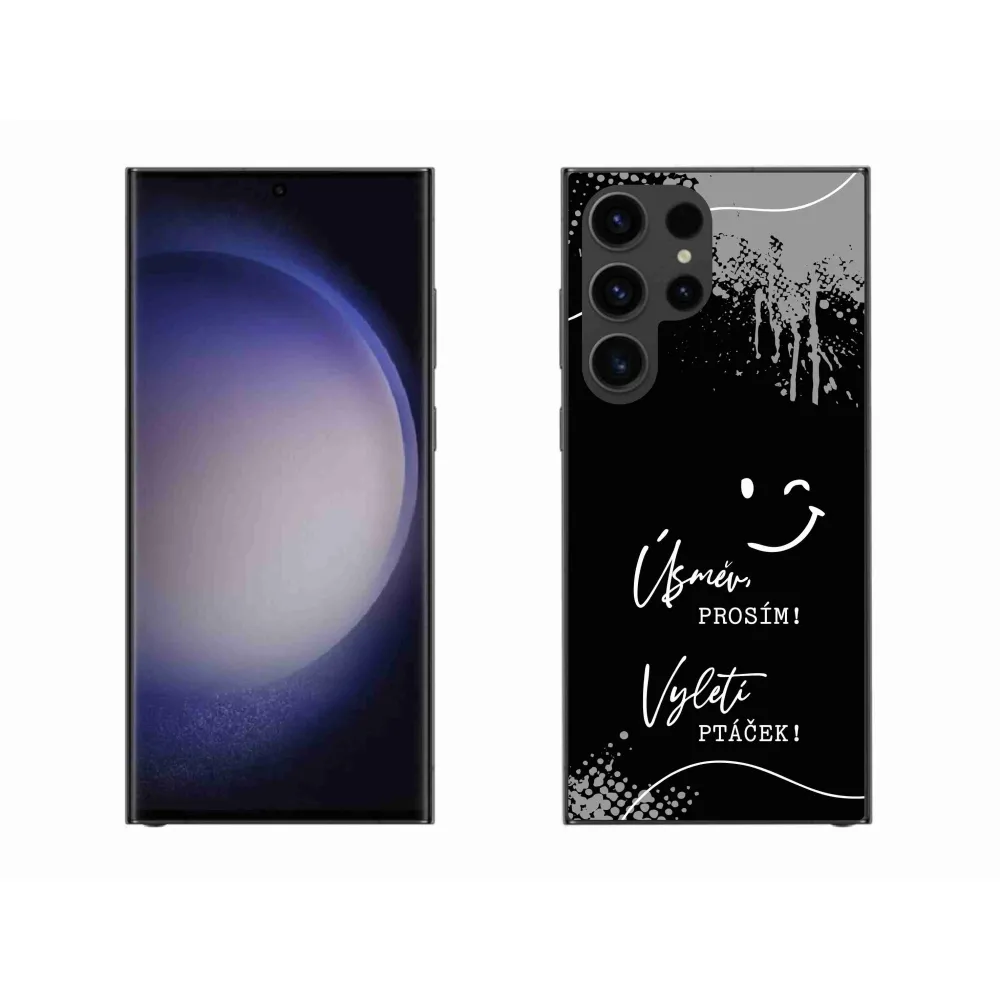 Átlátszó gél tok mmCase kép Samsung Galaxy S23 Ultra 5G - vicces szöveg 4 fekete háttérrel
