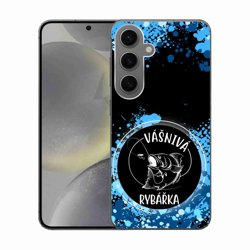 Rugalmas zselés tok mmCase a kép a Samsung Galaxy S24 - szenvedélyes halásznő fekete háttérrel
