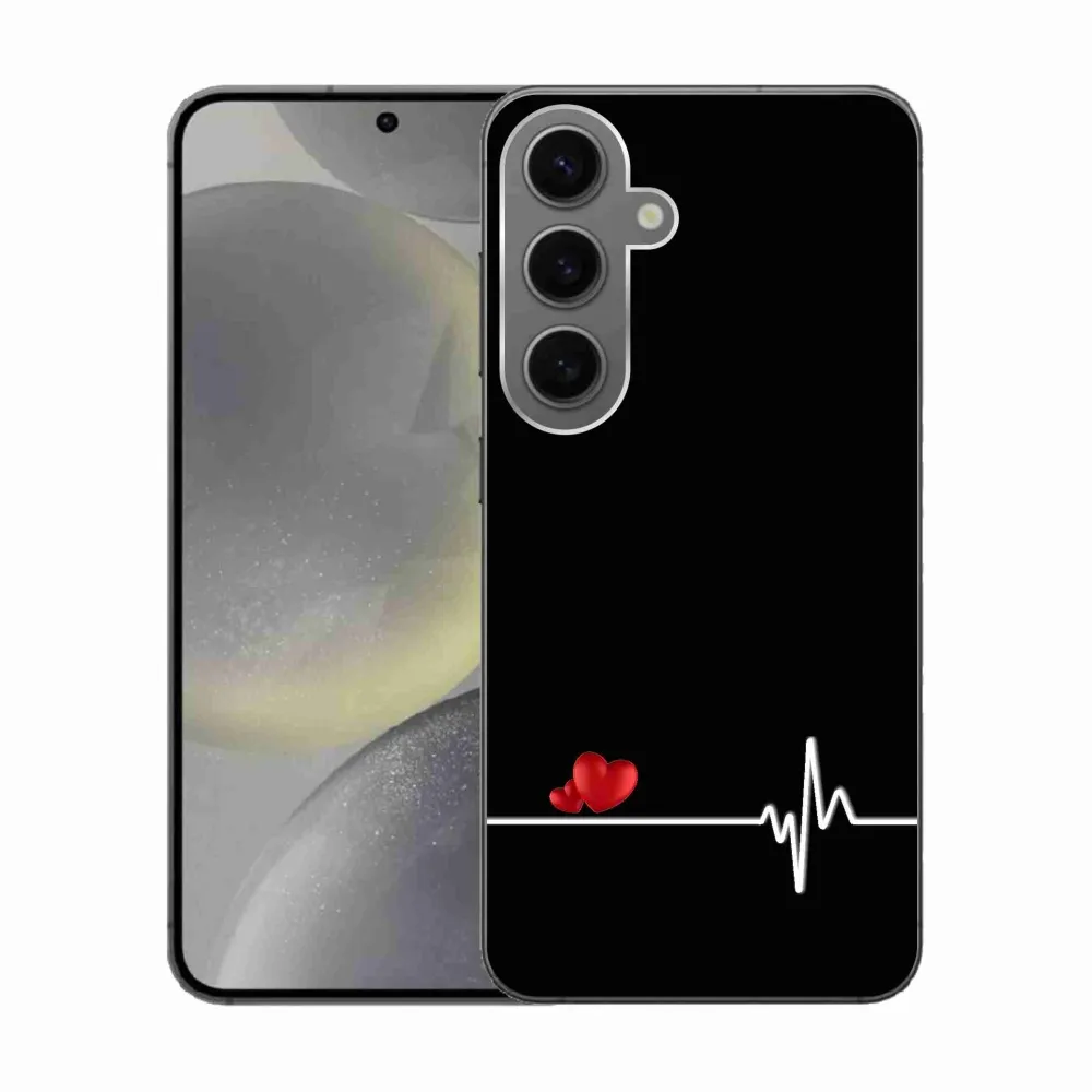 Gél borító mmCase Samsung Galaxy S24 készülékhez - szív és szívverés fekete háttérrel