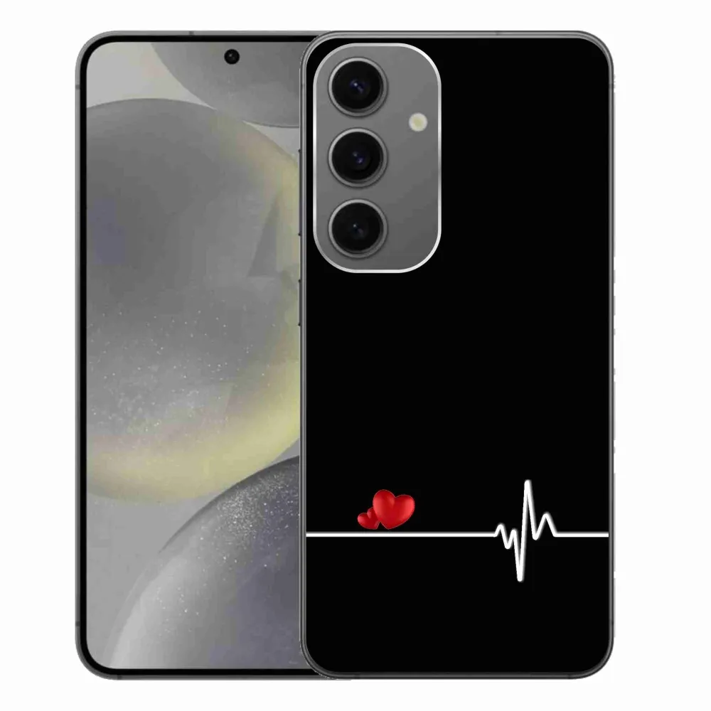 Gél borító mmCase Samsung Galaxy S24+ készülékhez - szív és szívverés fekete háttérrel