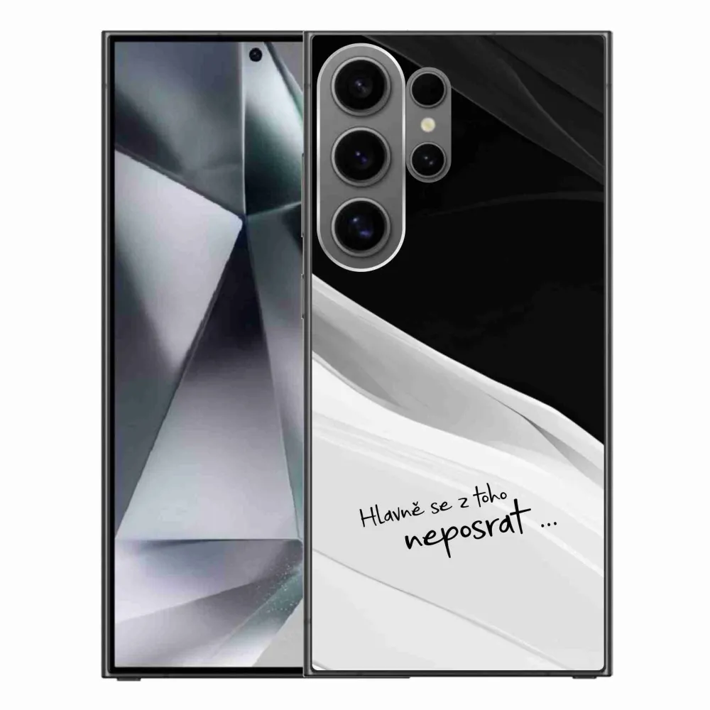 Rugalmas zselés tok mmCase kép a Samsung Galaxy S24 Ultra - vicces szöveg 13 fekete-fehér háttérrel