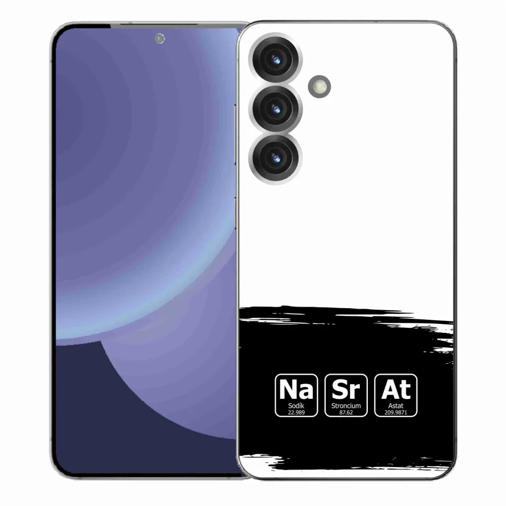 Rugalmas zselés tok mmCase kép Samsung Galaxy S25+ - kémiai elemek fekete és fehér háttérrel