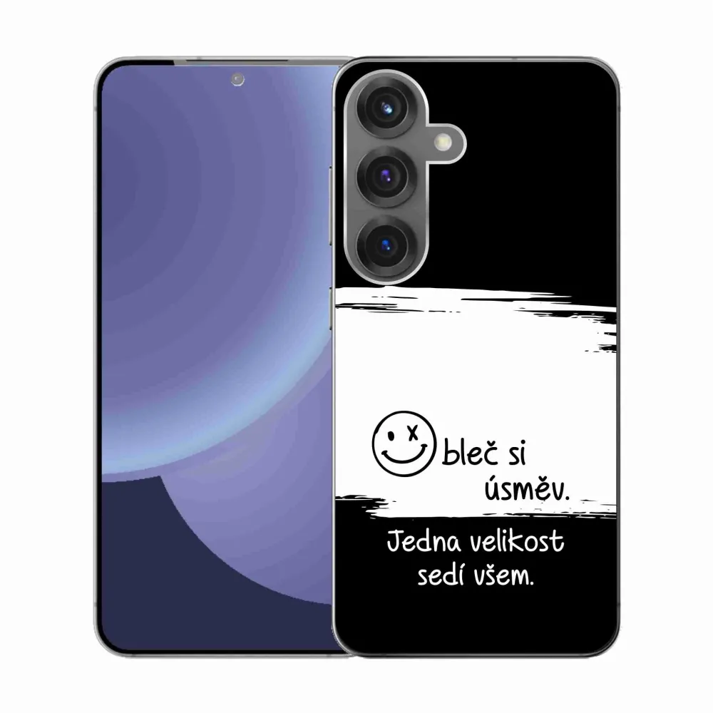Rugalmas zselés tok mmCase kép Samsung Galaxy S25 - vicces szöveg 8 fekete-fehér háttérrel