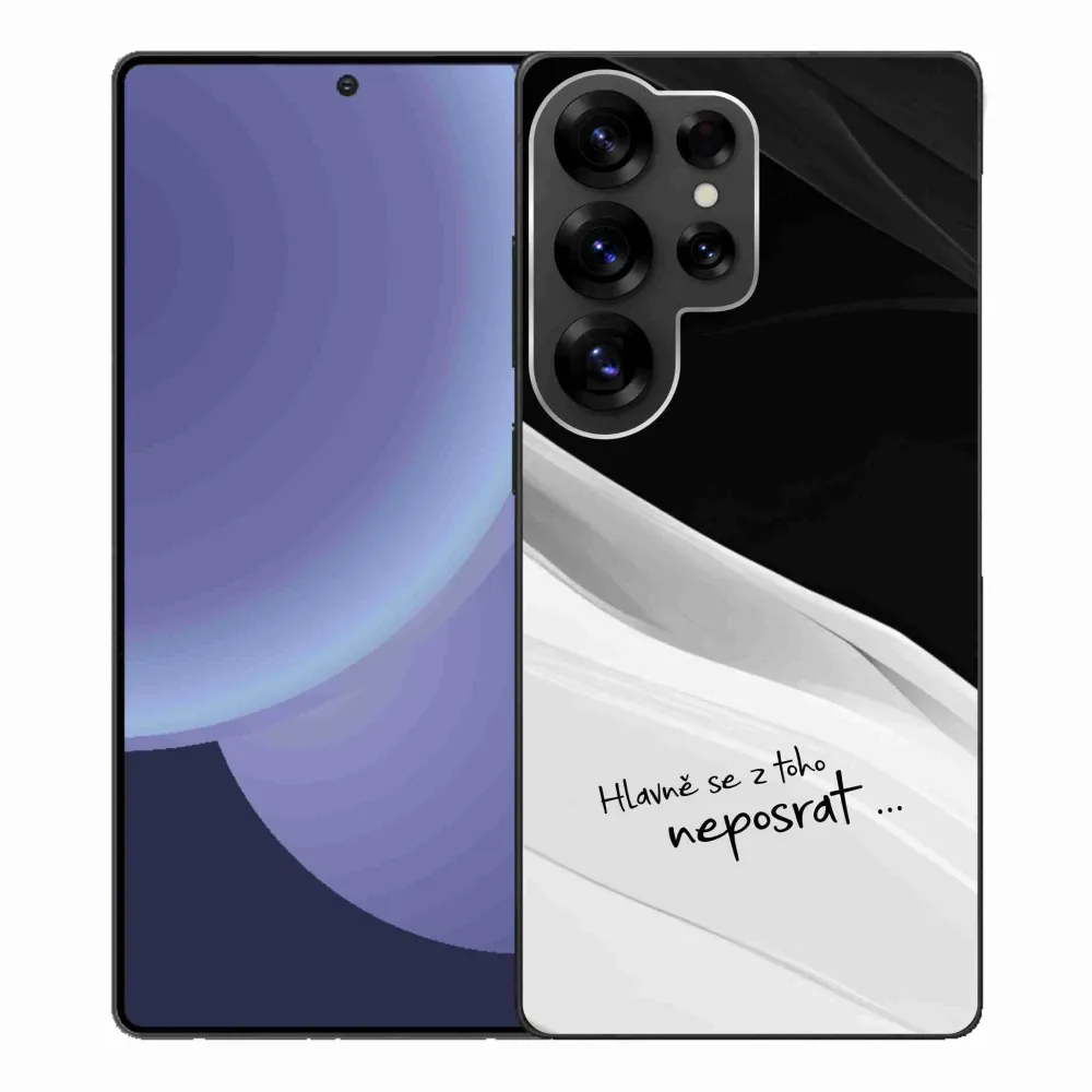 Rugalmas zselés tok mmCase kép a Samsung Galaxy S25 Ultra - vicces szöveg 13 fekete és fehér háttérrel