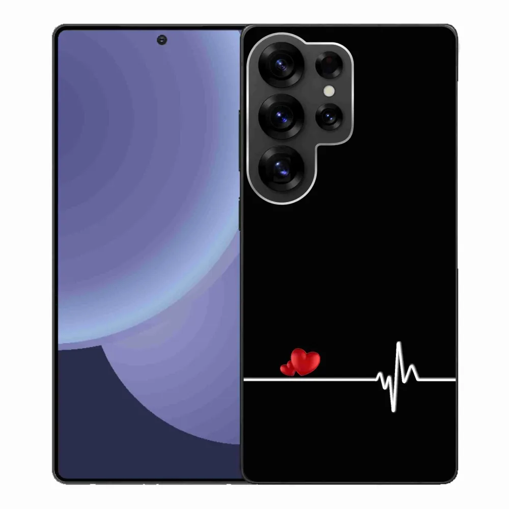 Gél borító mmCase Samsung Galaxy S25 Ultra - szív és szívverés fekete háttérrel