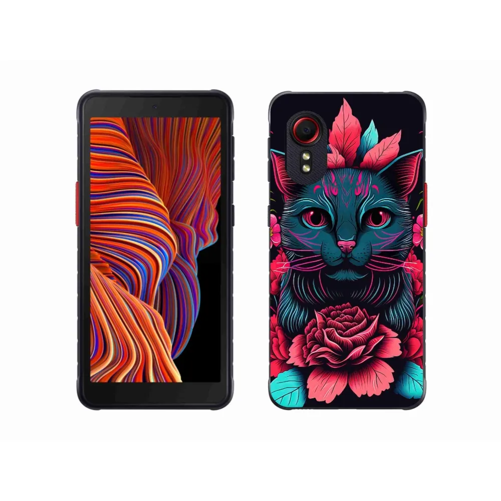 Rugalmas zselés tok mmCase kép Samsung Galaxy Xcover 5 - virágok és macska
