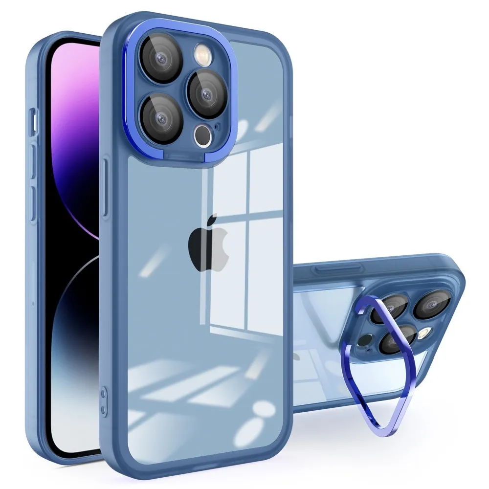 Gél tok fix hátlappal és állvánnyal iPhone 15 Pro Max készülékhez - kék