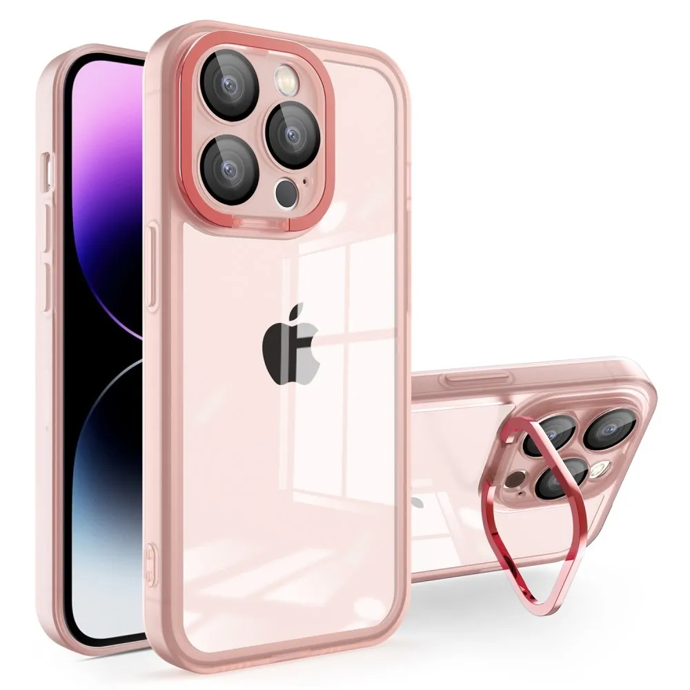 Gél tok fix hátlappal és állvánnyal iPhone 15 Pro Max készülékhez - rózsaszín