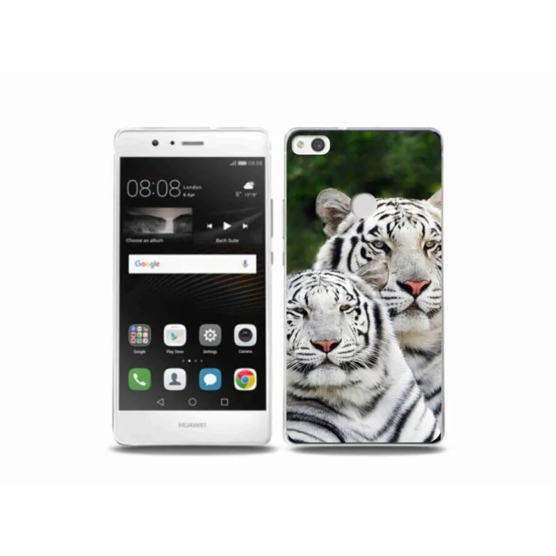 Gél tok mmCase a Huawei P9 Lite (2017) számára - fehér tigrisek