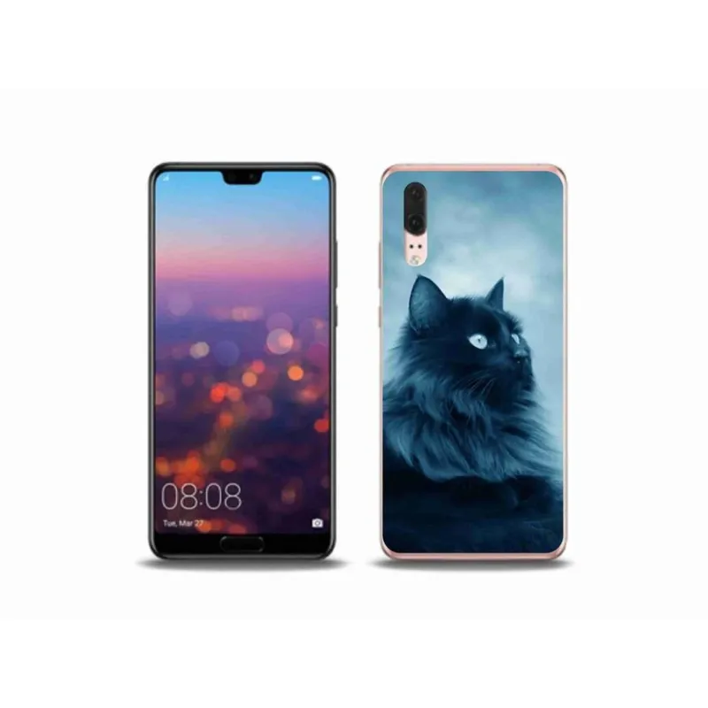 Gél tok mmCase a mobil Huawei P20 - fekete macska 1