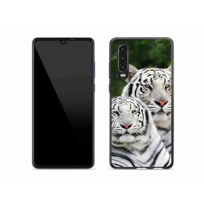 Gél tok mmCase a mobil Huawei P30 - fehér tigrisek számára