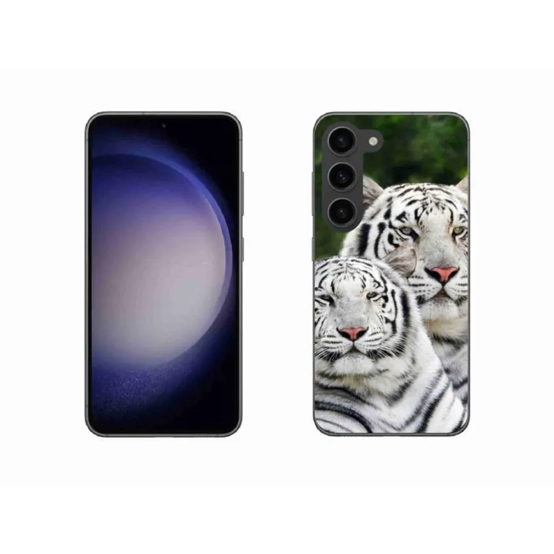 Gél tok mmCase a Samsung Galaxy S23 5G készülékhez - fehér tigrisek