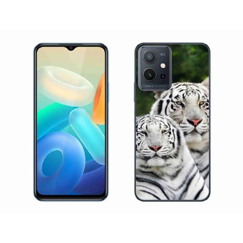 Gél tok mmCase a Vivo Y55 5G-hez - fehér tigrisek