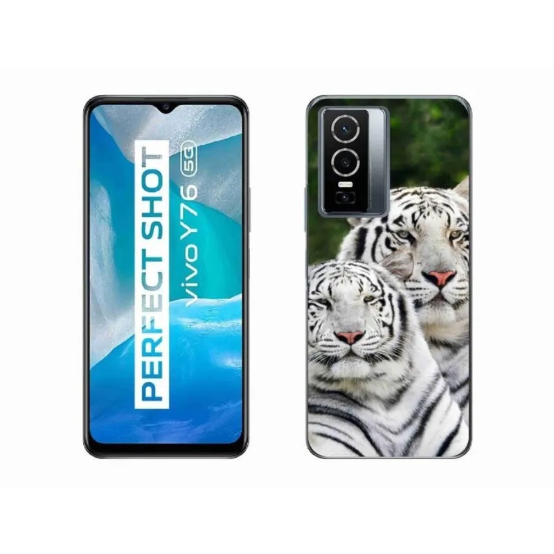 Gél tok mmCase a Vivo Y76 5G készülékhez - fehér tigrisek
