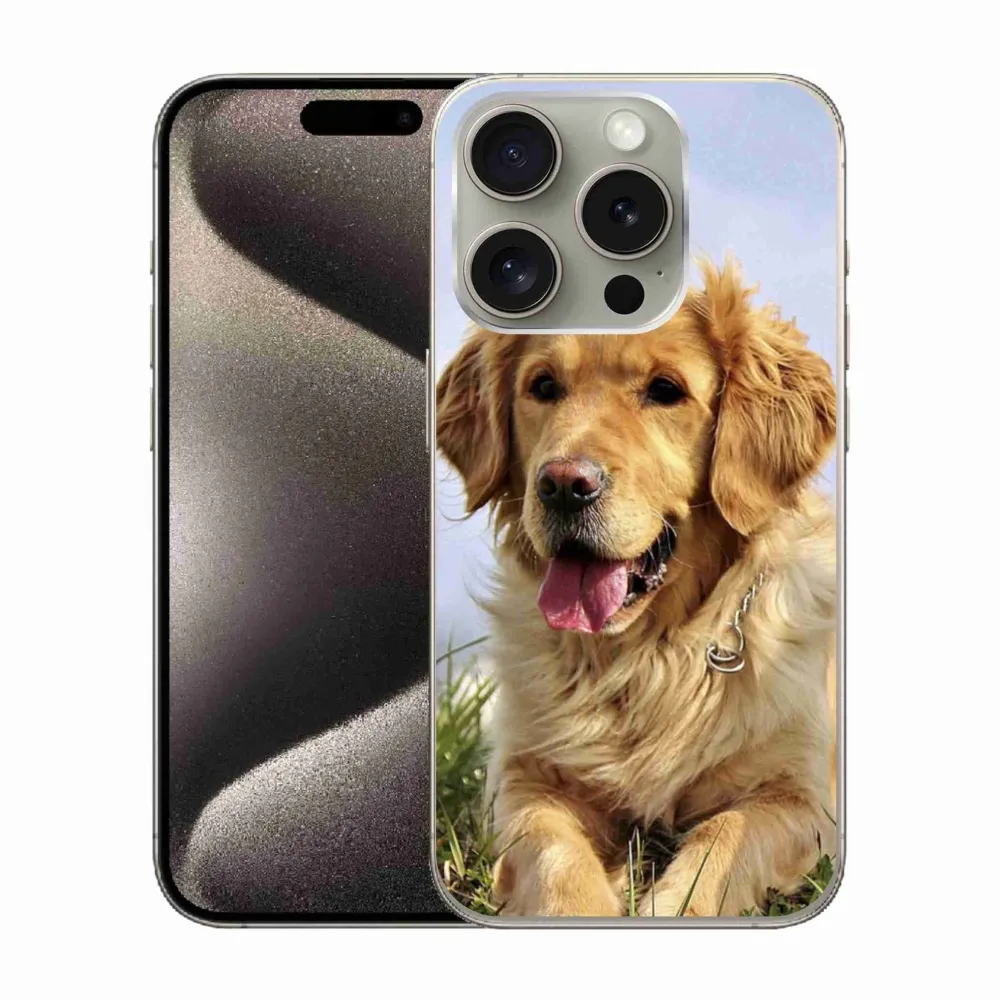 Rugalmas zselés tok mmCase képpel iPhone 15 Pro készülékhez - arany retriever