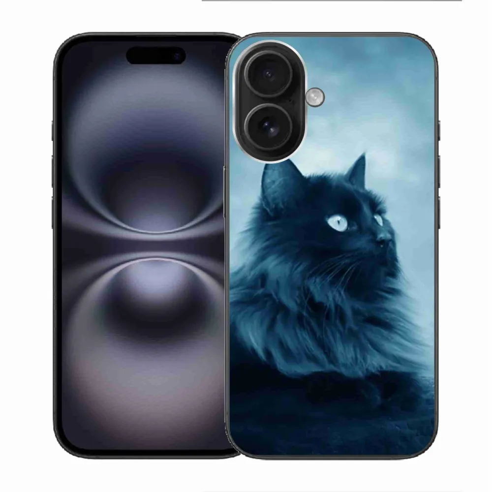 Rugalmas zselés tok mmCase képpel iPhone 16-hoz - fekete macska 1