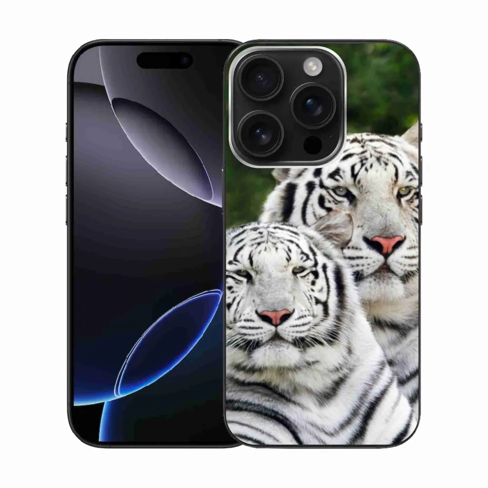 Gél tok mmCase iPhone 16 Pro készülékhez - fehér tigrisek