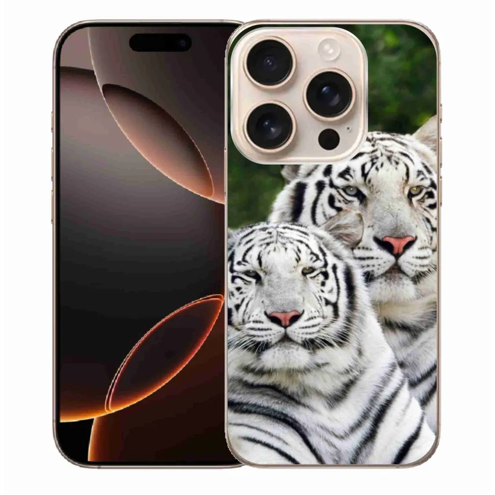 Rugalmas zselés tok mmCase képpel iPhone 16 Pro Max készülékhez - fehér tigrisek