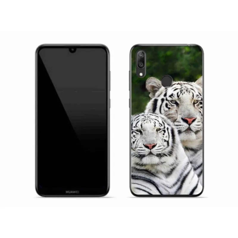 Gél tok mmCase mobil Huawei Y7 (2019) - fehér tigrisek