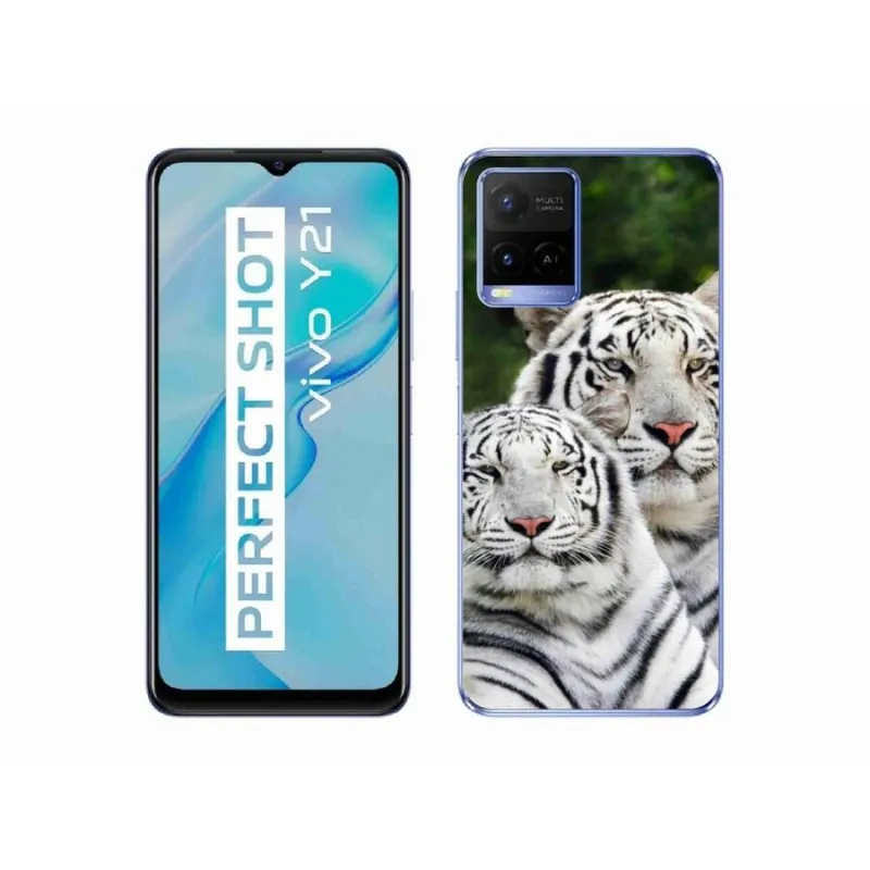 Gél tok mmCase mobiltelefonhoz Vivo Y21/Y21s/Y33s - fehér tigrisek