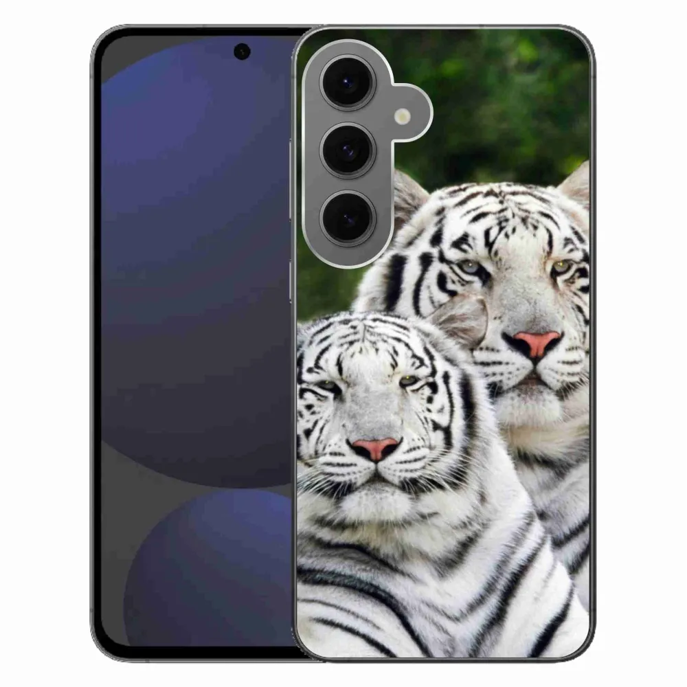 Rugalmas zselés borító mmCase Samsung Galaxy S24 FE képével - fehér tigrisek
