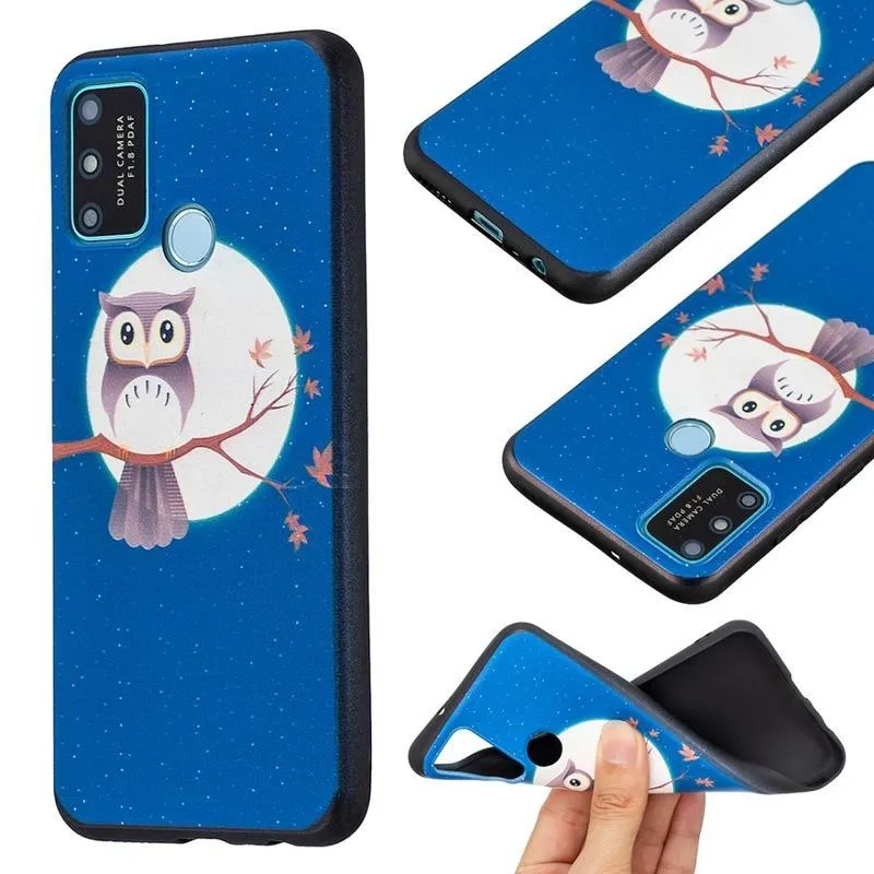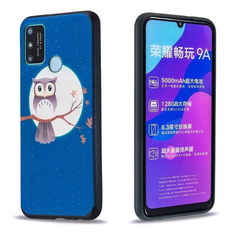 Szilikon tok Nyomtatás a Honor 9A mobiltelefonra egy bagollyal egy ágon