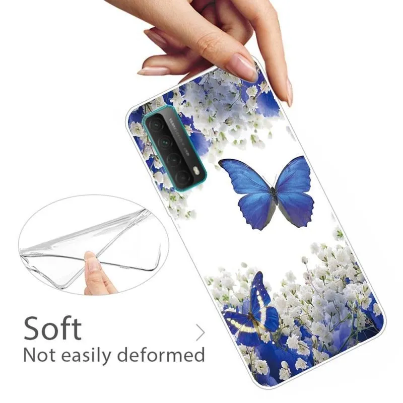 Szilikon tok Nyomtatás Huawei P Smart 2021 kék pillangókkal