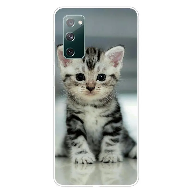 Szilikon tok Nyomtatás a Samsung Galaxy S20 FE/S20 FE 5G mobiltelefonra, aranyos cica motívummal.