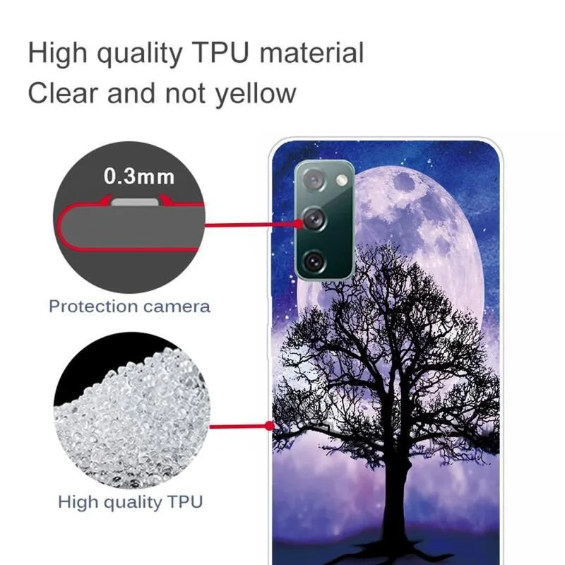 Szilikon tok Nyomtatás Samsung Galaxy S20 FE/S20 FE 5G készülékhez, fával és holddal