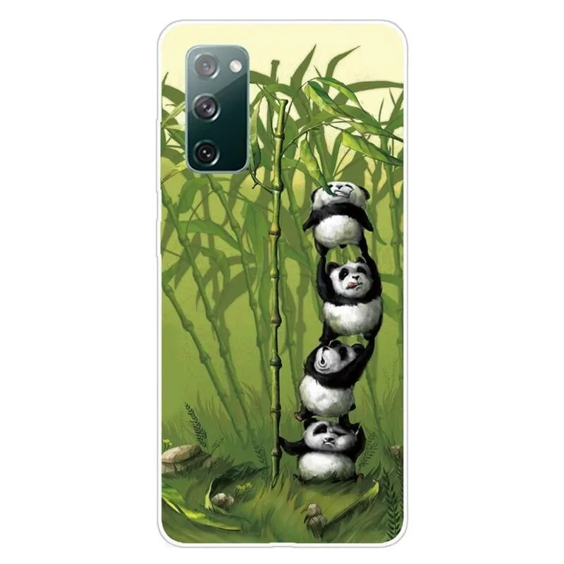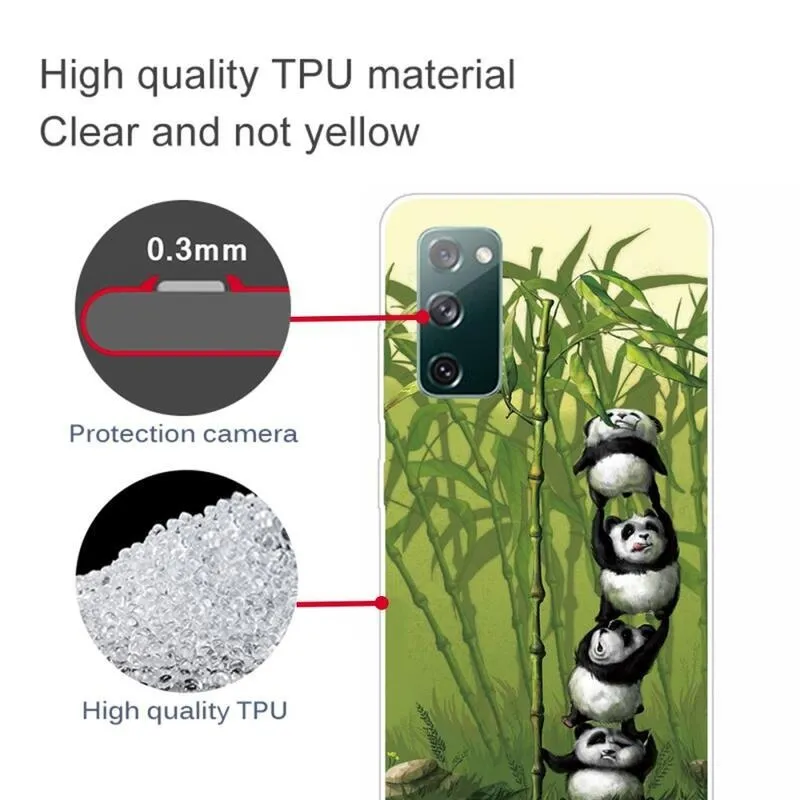 Szilikon tok Nyomtatás Samsung Galaxy S20 FE/S20 FE 5G számára, pandamotívummal a bambusz közelében
