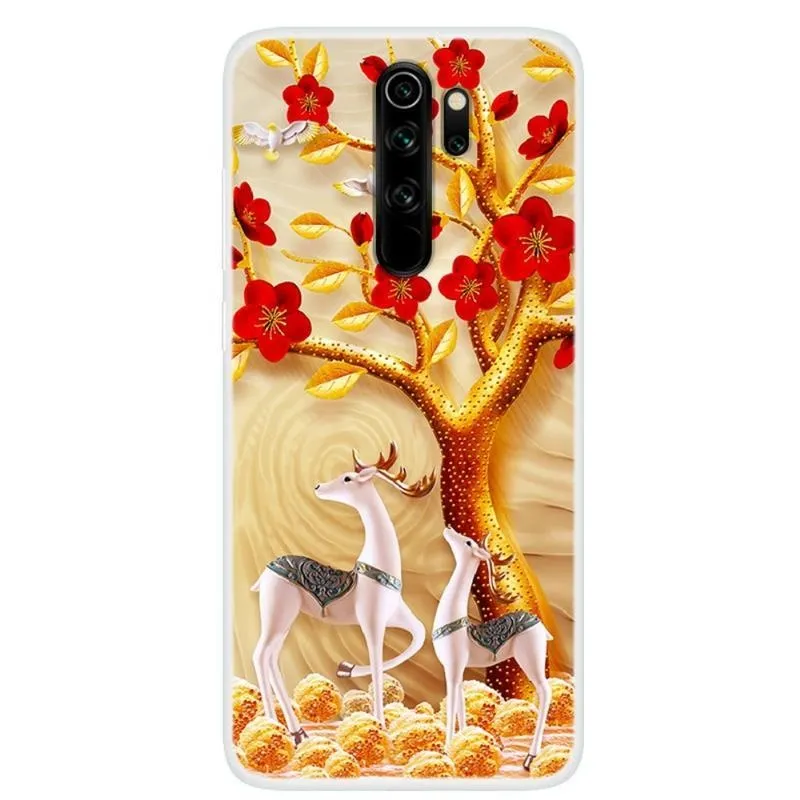 Szilikon tok Nyomtatás a Xiaomi Redmi Note 8 Pro számára rénszarvas és fa motívummal