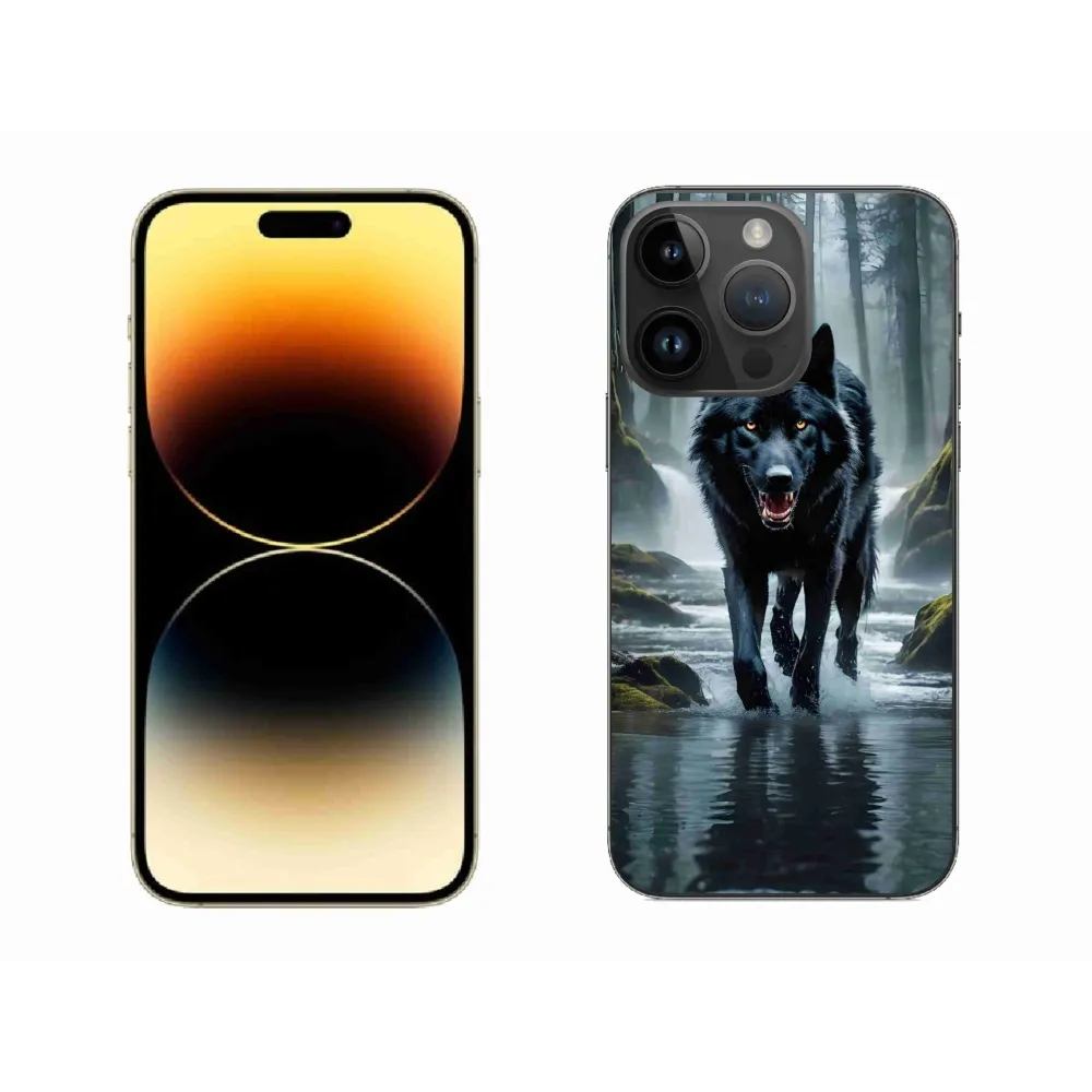 Rugalmas zselés tok mmCase képpel iPhone 14 Pro Max készülékhez - fekete farkas