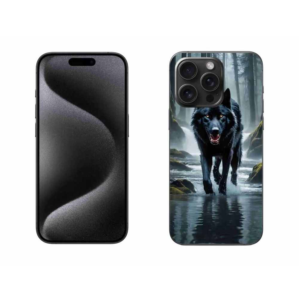 Rugalmas zselés tok mmCase képpel iPhone 15 Pro Max készülékhez - fekete farkas