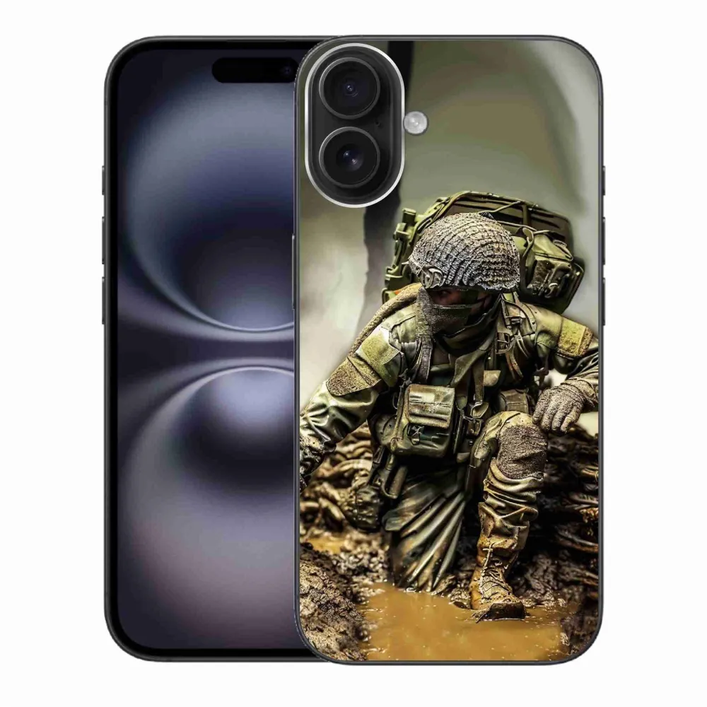 Rugalmas zselés tok mmCase képpel iPhone 16 Plus készülékhez - katona