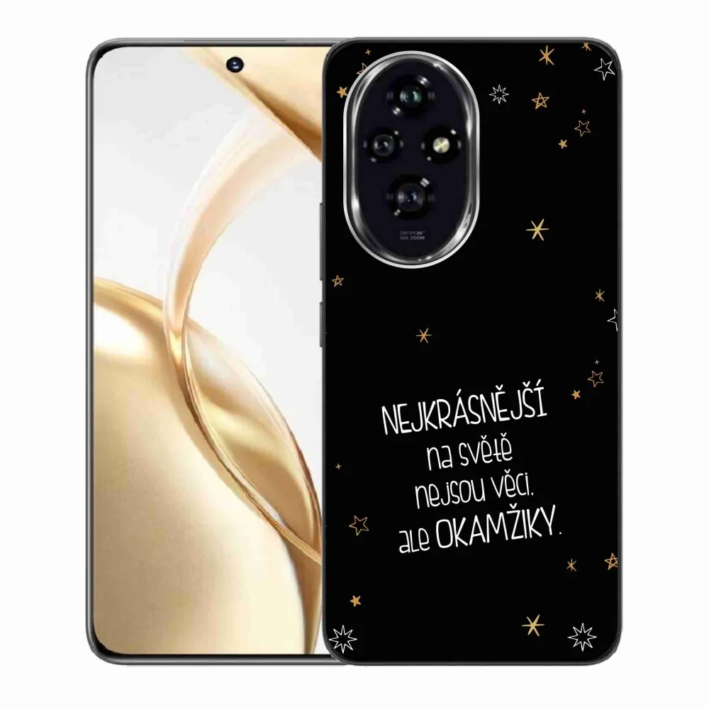 Rugalmas zselés tok mmCase a Honor 200 5G képével - idézet 4 fekete háttérrel