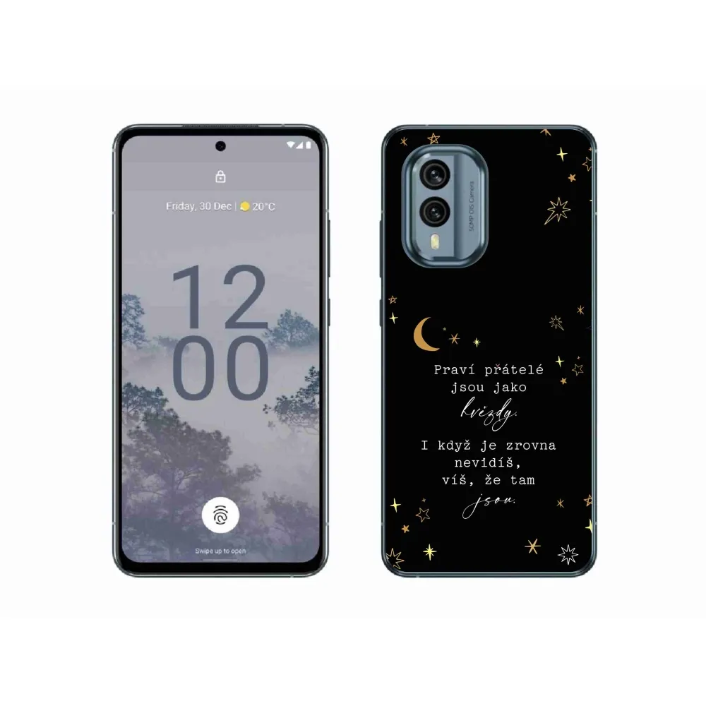 Rugalmas zselés tok mmCase a Nokia X30 5G képével - idézet 6 fekete háttérrel